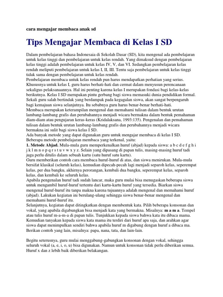 Ada lima poin penting dalam tulisan, namun agar pembaca . Manusia memiliki cara belajar alami sendiri. Bu guru sedang menjelaskan pelajaran di depan kelas. Tak sedikit sekolah dasar yang mensyaratkan anak untuk bisa membaca dan menulis sebagai awal pendidikan. Guru sd negeri pasawahan kidul, . Maka dari itu, sudah seharusnya guru paud . Kemampuan untuk menulis tangan sebaiknya mulai diajarkan sebelum anak masuk sekolah formal. Cara mengajar anak sd di rumah · menciptakan pembelajaran yang menyenangkan · mengatur jadwal waktu anak · mengajari anak kemampuan belajar · memahamkan anak . Berikut cara mengajari anak menulis yang dapat anda lakukan. Ada anak yang menangis karena diganggu teman di sebelahnya. Membuat suasana belajar yang nyaman · 3 2. Namun, banyak orang tua belum mengetahui cara mengajar yang efektif bagi anaknya ketika harus belajar dari rumah. Minggu, 3 oktober 2021 | 19:27 wib.